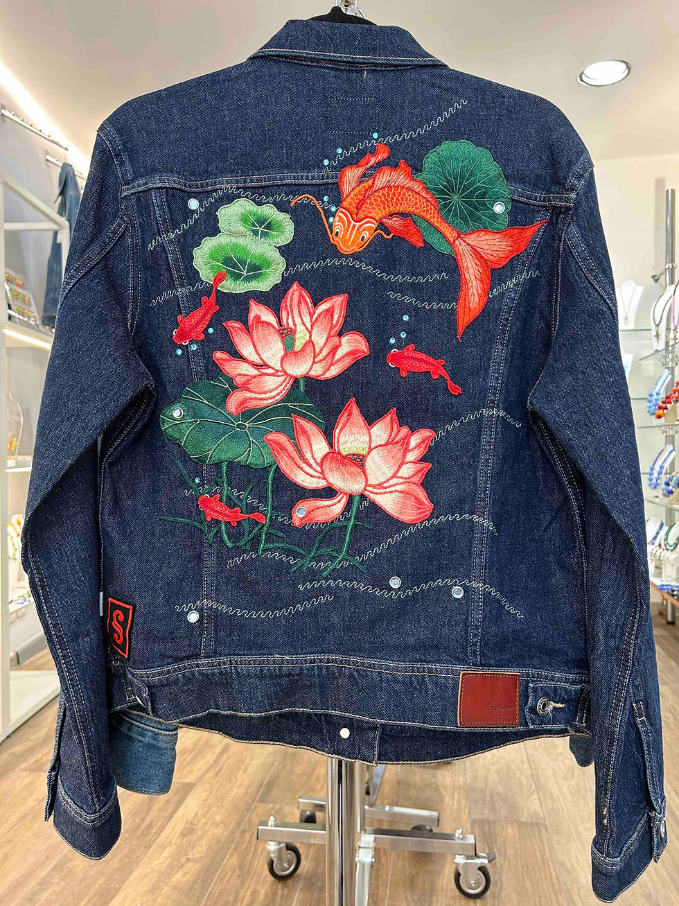 Pièce unique avec des perles en verre soufflées inspirées de la nature avec feuillage. Reproductible sous réserve de modifications.